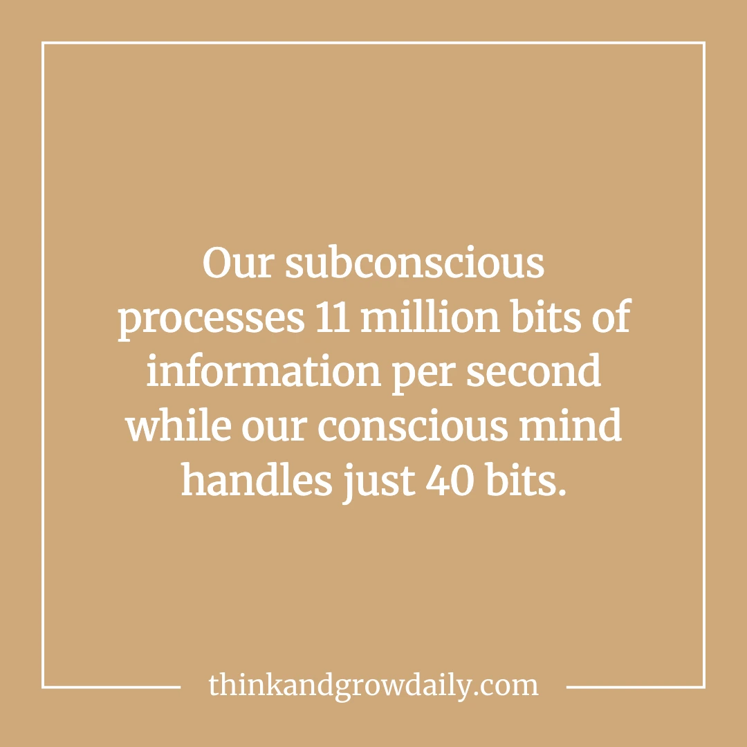 Scientists estimate the subconscious processes about 11 million bits of information per second, while your conscious mind handles just 40 bits. It’s not even a fair fight.